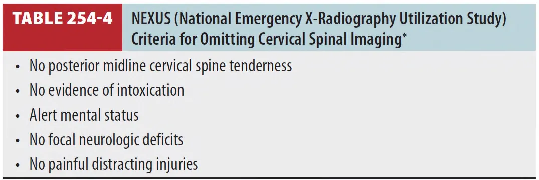 ⇒ 만족하면 cervical spine의 full motion exam을 시행할 수 있다.