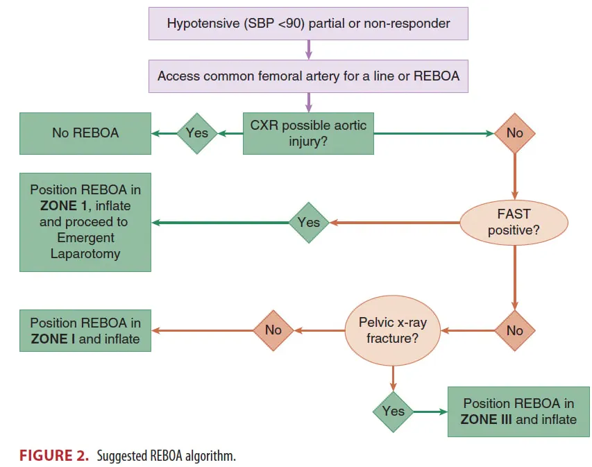 Resuscitation에 대한 반응이 없는 Diaphragm 아래쪽의 aorta hemorrhagic shock의 경우