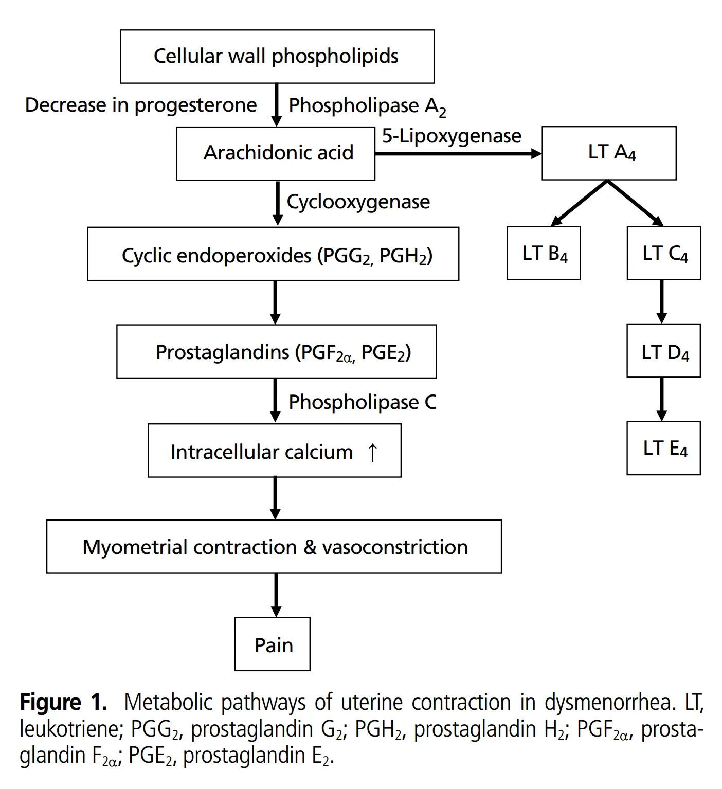 류코트리엔 C4와 D4는 생리통의 발생과 강도 모두 관여하는 것으로 알려져 있다