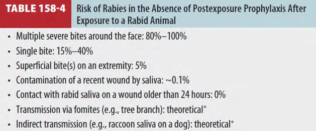 nonbite exposure는 긁히거나, 찰과상 입거나, 점막이 침에 오염 된 것으로 감염은 매우 드물다.