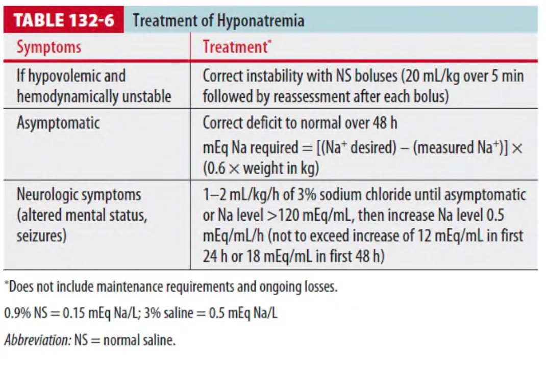 이러한 경우 신경학적 증상이 호전될 때까지 빠르게 교정하거나, Na+ level이 120mmol/L에 도달하게