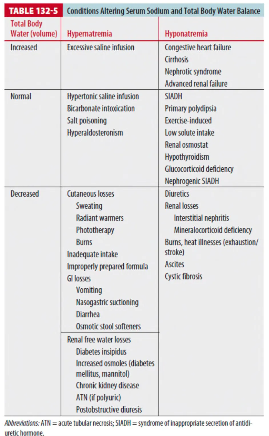 2. 흔한 탈수의 원인은 Table 131-1 에 소개되어 있고, 탈수로 인한 흔한 증상은 Table 131-2에