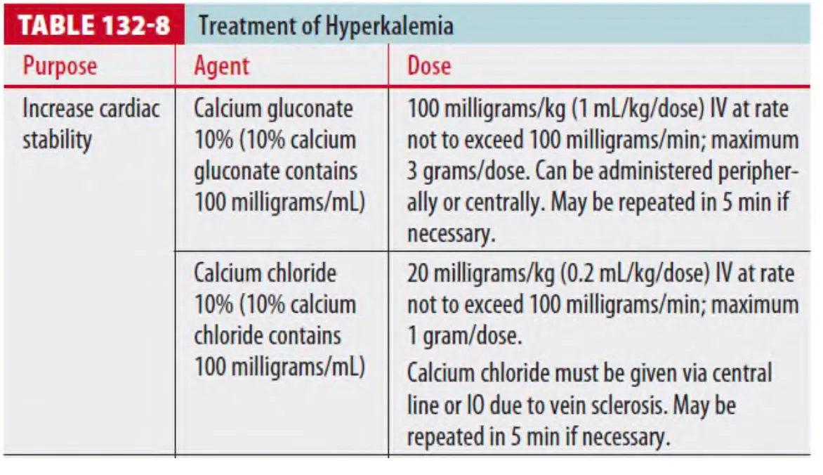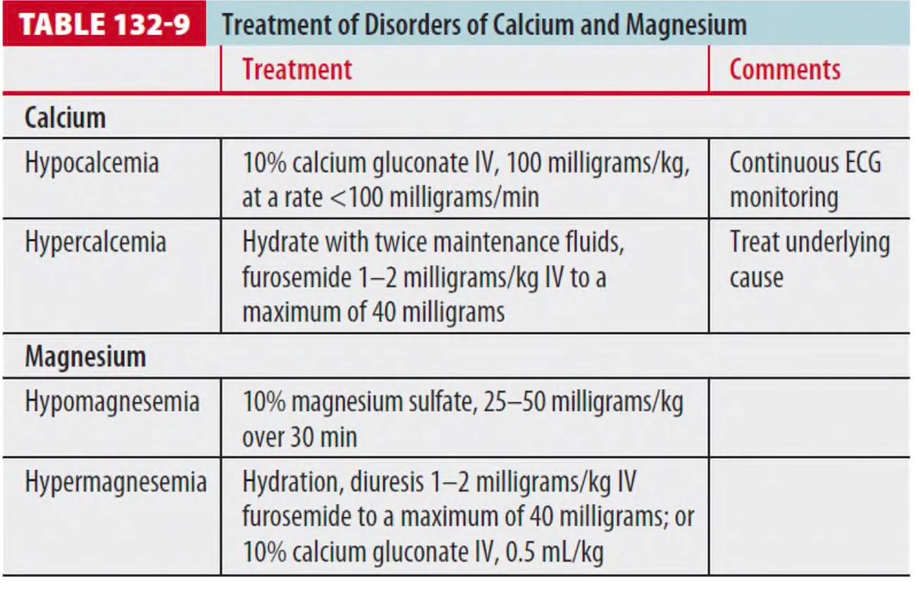 (2) 치료 (증상 있을 때만) : Calcium gluconate 10% 100mg/kg (100mg/min 미만의 속도로)