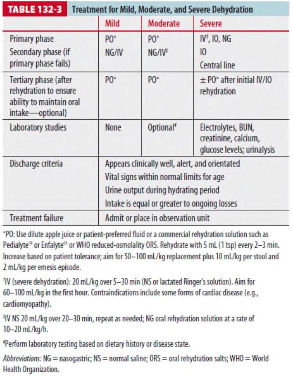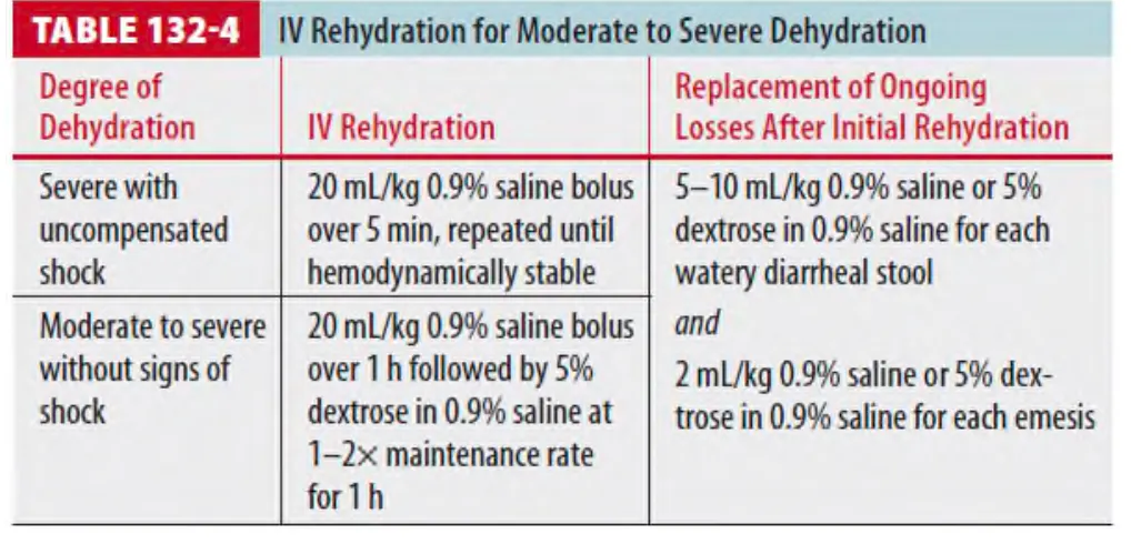 * 탈수 정도에 따른 수액 요법은 Table 132-3 에 정리되어 있다.