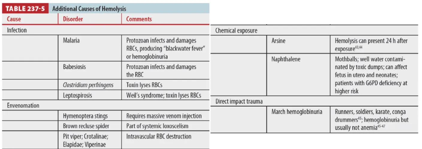Hb 생성 또는 RBC 막의 유전적/선천적인 질병 떄문이 아닌 RBC의 파괴가 특징