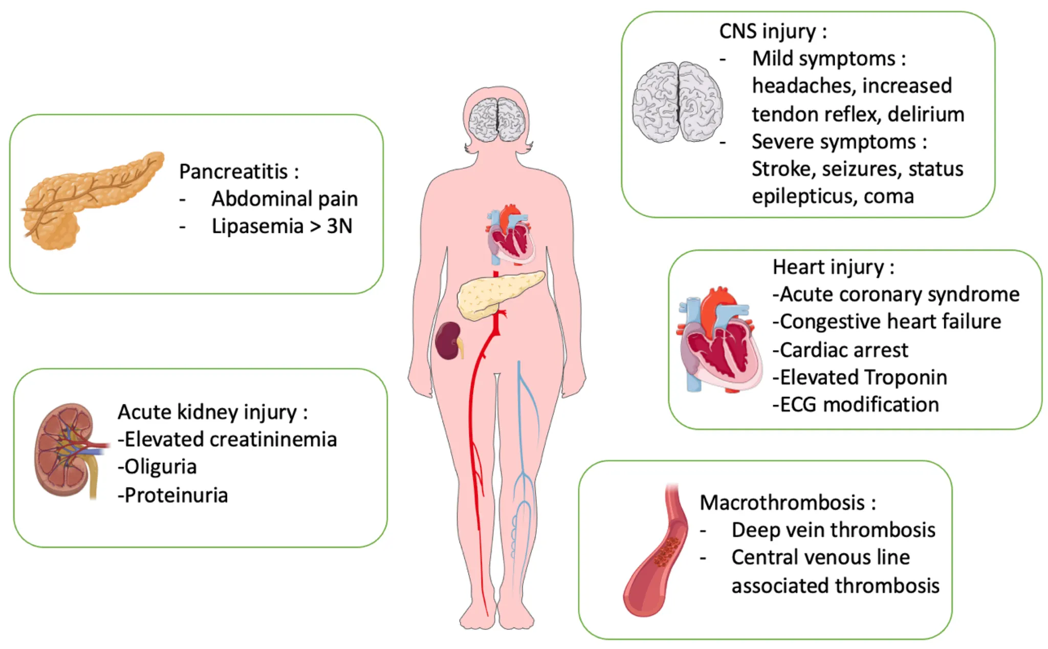 neurologic deficits, Coma, Acute renal injury 발생