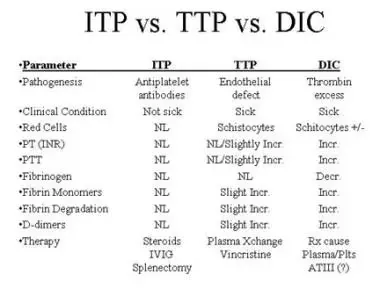 TTP thrombi는 Fibrin이 포함 되지 않기 때문에 정상 Coagulation 보여, DIC와 구별된다.