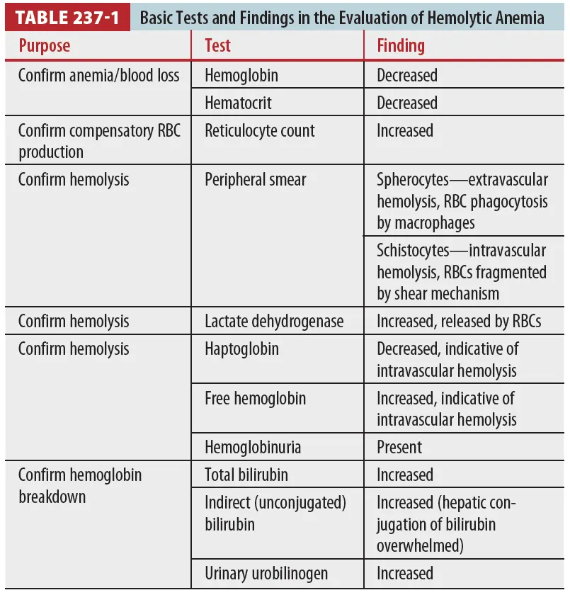 RBC hemolysis, Hb breakdown, Compensatory RBC production