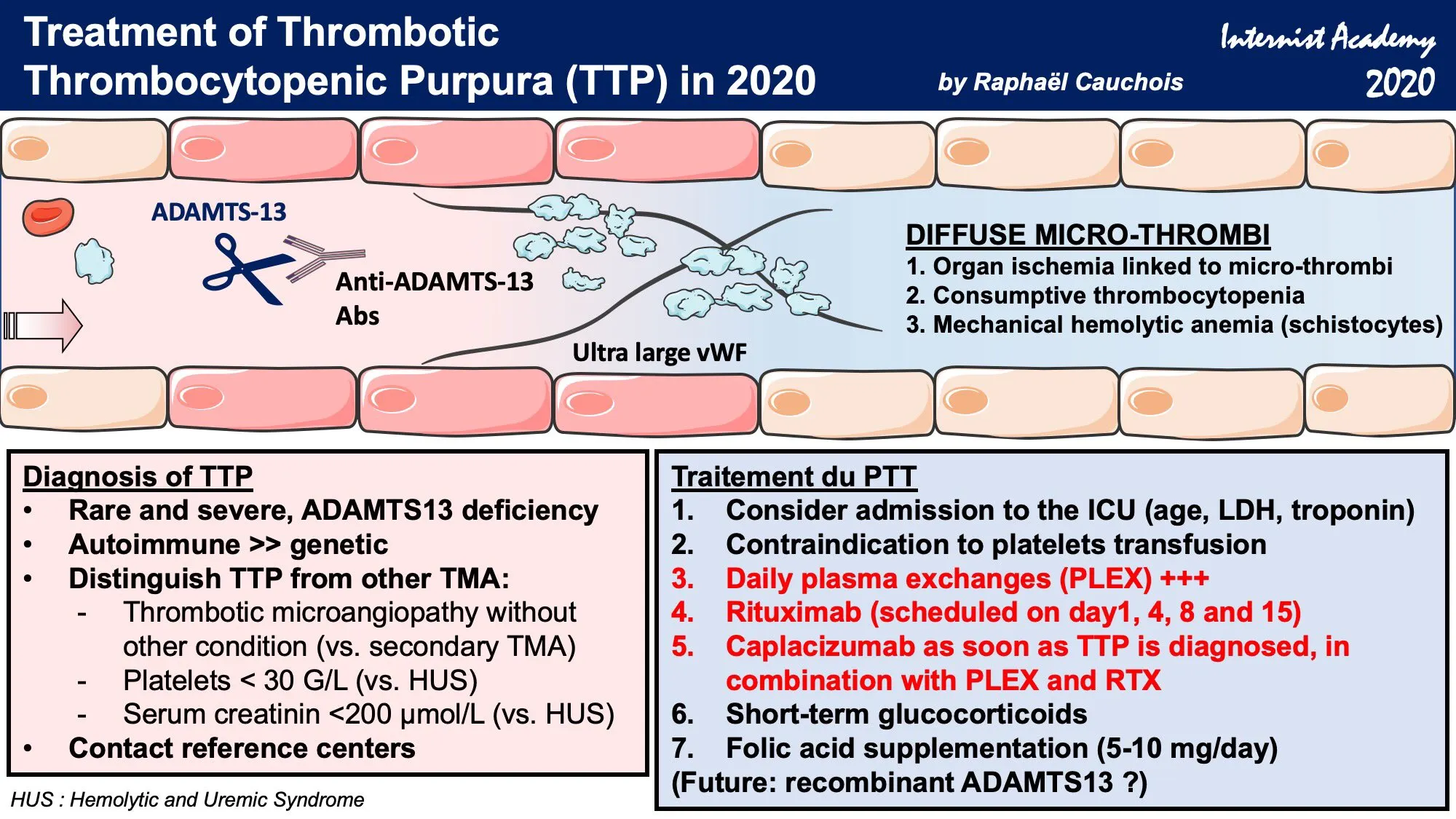 Severe TTP의 경우 RBC transfusion, Anticonvulsants, Antihypertensives, Hemodialysis와 같은