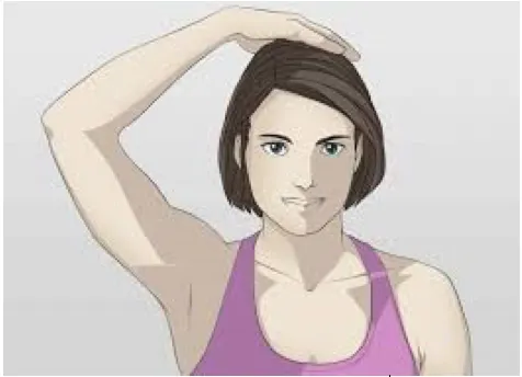 어깨를 능동적/수동적으로 외전하여 어리위에 얹는다.