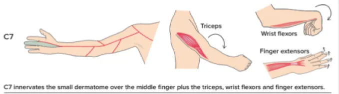 통증 부위 : 견갑골 내측, 팔의 뒤쪽, 전완의 등쪽, 중지 손가락