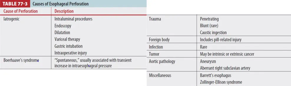 (3) Cervical esophageal perforations → Cervical subcutaneous emphysema