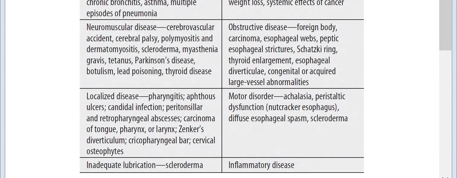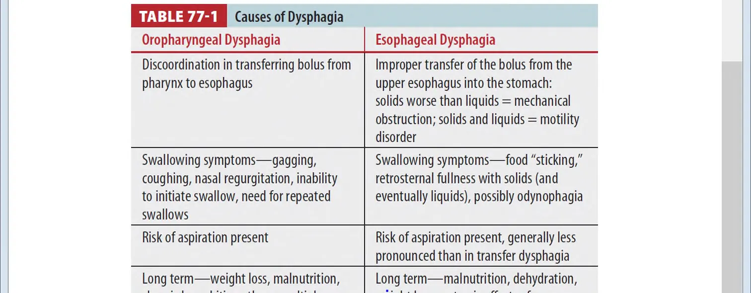 (2) Mechanical or obstructive disease는 점점 악화, 처음에는 고체 이후 액체 삼키기 힘듬