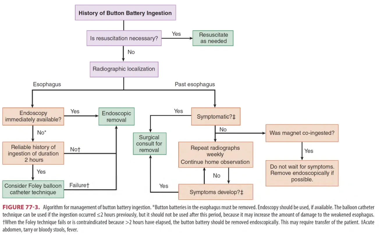 ② GI tract injury 증상이 있으면 즉시 surgical consult for removal
