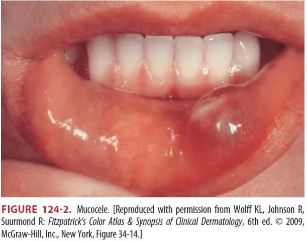 (1) Oral mucosa에 발생하는 small, bluish, discrete swellings