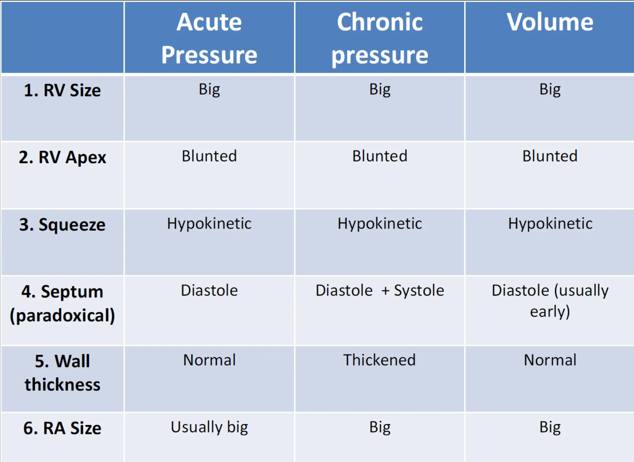 RA/RV : dilated, Hypokinetic (TAPSE < 18 mm)