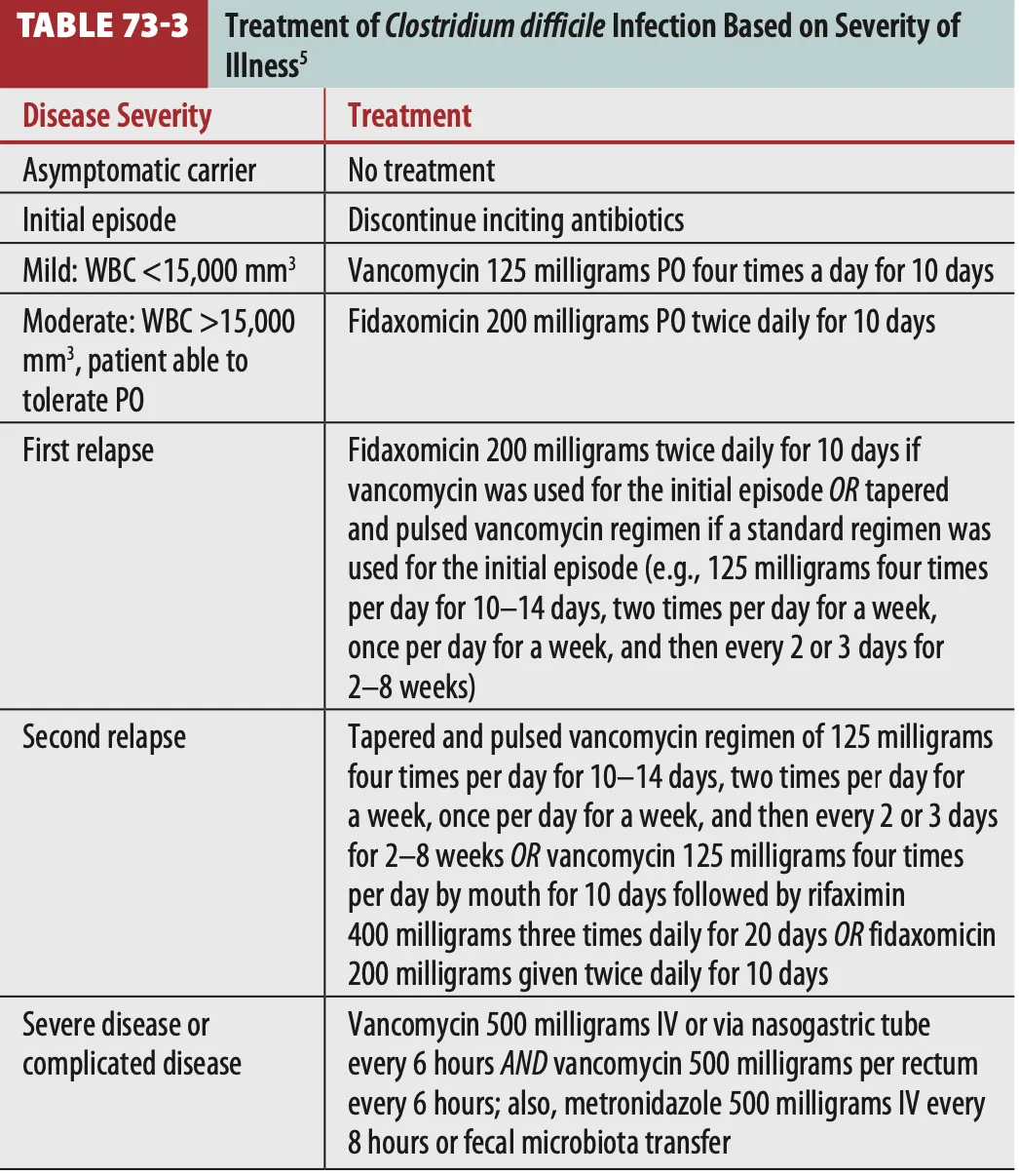 (2) Severity가 높은 경우 경우에 따라 metronidazole, vancomycin이 필요.
