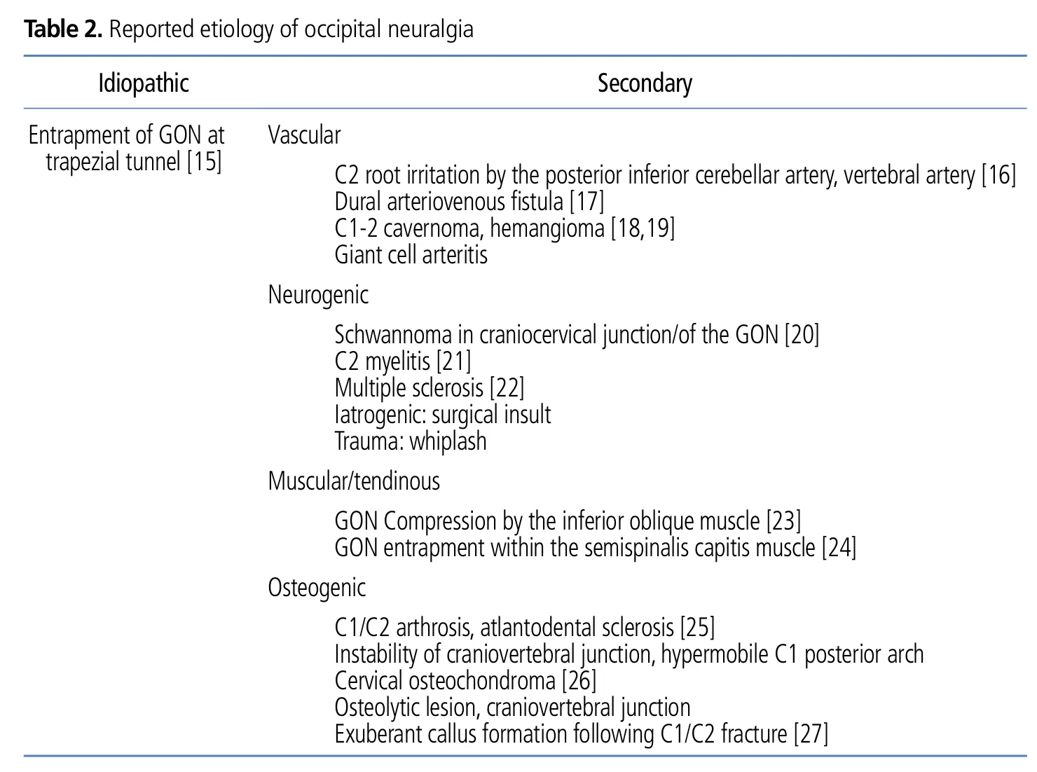 GON은 C2 후근의 주요 구심성 입력을 구성하며, 종종 **승모근(trapezius muscle)**의 건막성 가장자리(tendinous aponeurotic edge)가 위치한 **승모근 터널(trapezial tunnel)**에서 압박됩니다.
