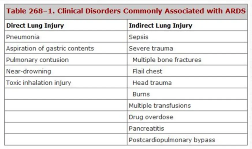 - 폐에 직접적 손상이나 irculating inflammatory mediators(trauma, sepsis, or drugs)