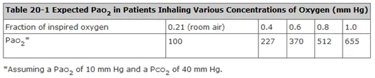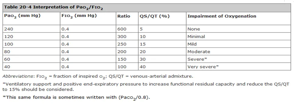 500~600일때 plumonary shunt(QS/QT) 3~5%, <200일때 QS/QT 약 20% 로 반비례 아님.