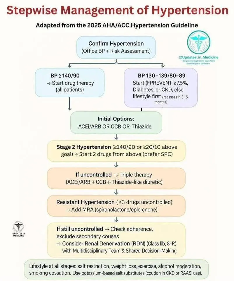 한 번이라도 혈압이 높았다면, 1주 내에 CV 전문의에게 의뢰 (Long-term HTN이 아닌지 확인 위해)
