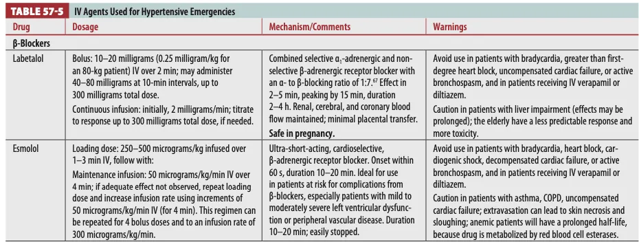 Labetalol (Trandate) - 100--200 mg PO . 발현 시간 15- -30분, 최고 효과 1-'-3시간,