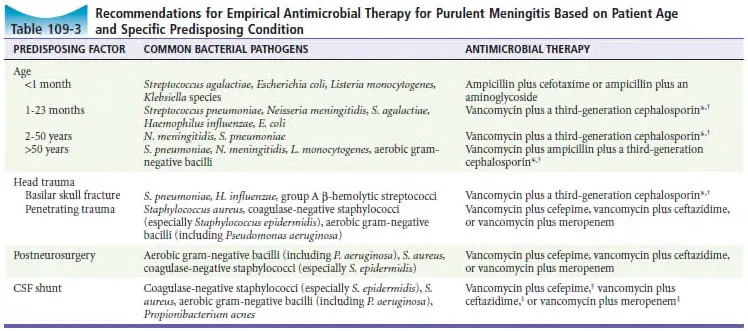 (2) 18~49세 : 3rd cephalosporin + vancomycin → 페니실린 알러지 chrolamphenicol + bactrim
