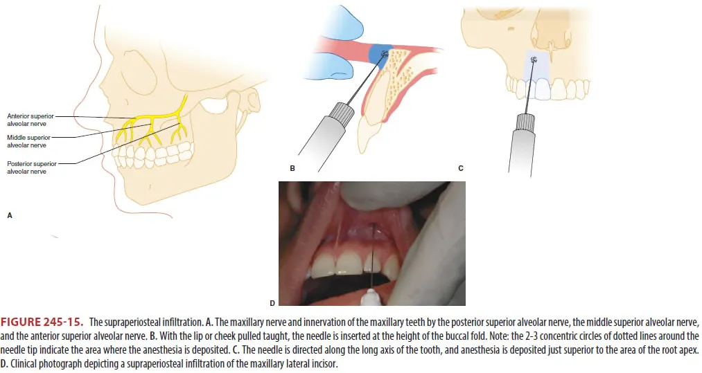 (1) Supraperiosteal Infiltration (Fig 245-15)