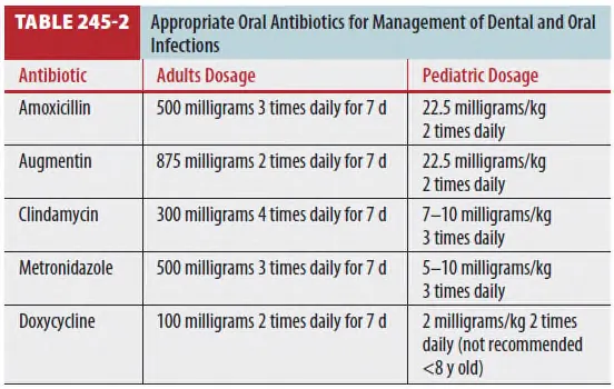 ⑥ 감염의 systemic sign이 있을 시 항생제를 처방한다 (Table 245-2).