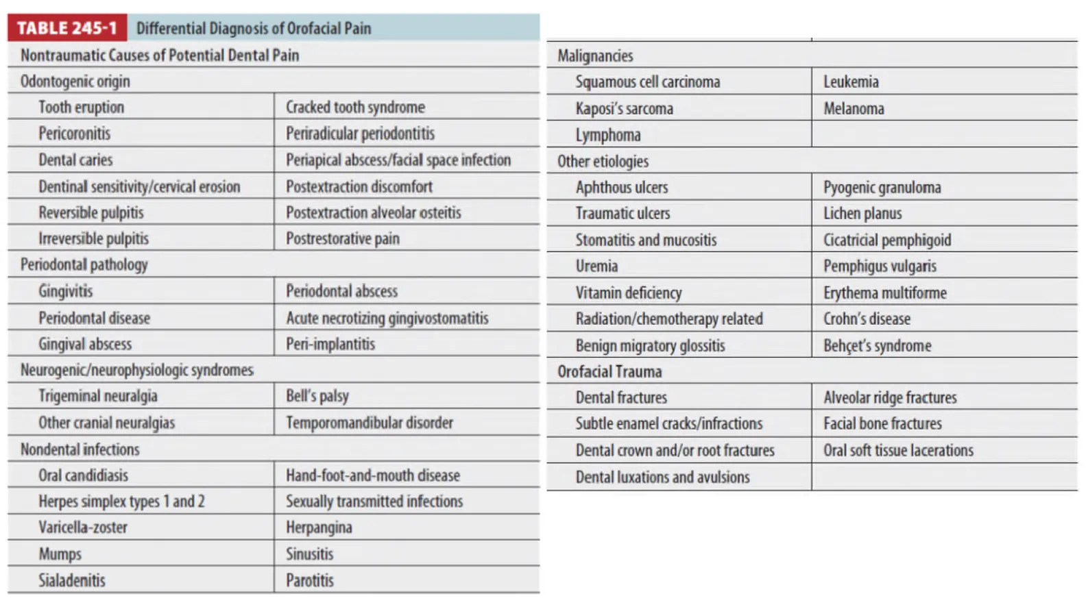 Orofacial pain의 원인은 다양하다.(Table 245-1)