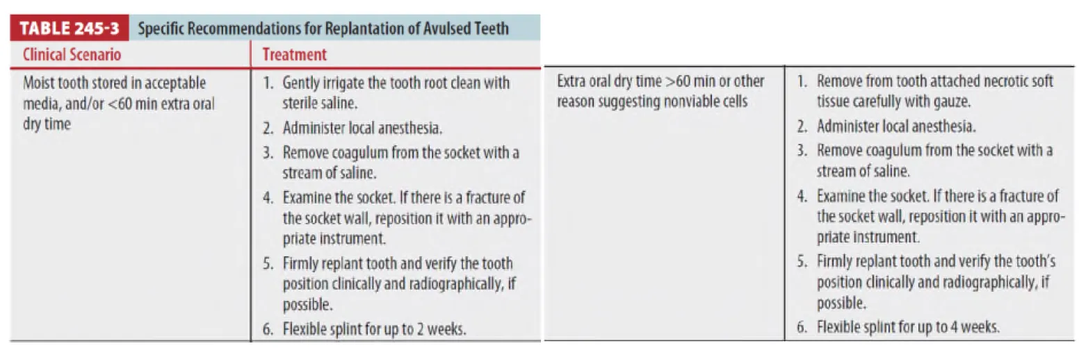 : 24~48 시간 이내 치과 f/u이 중요하며 splint는 최소 4주가 필요하다.