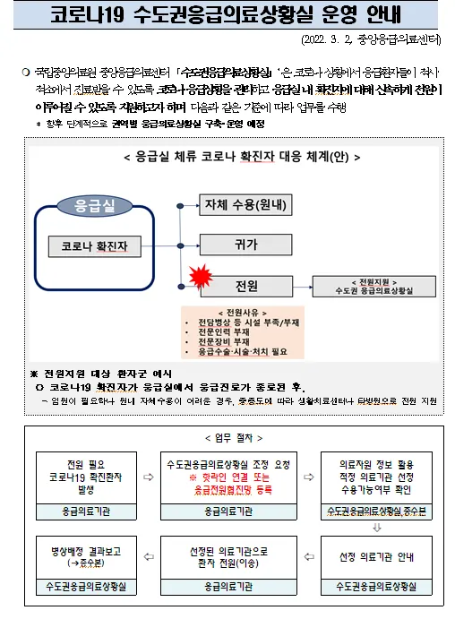 코로나 응급상황 관리 및 확진자 관련 전원 연계를 지원하려 합니다
