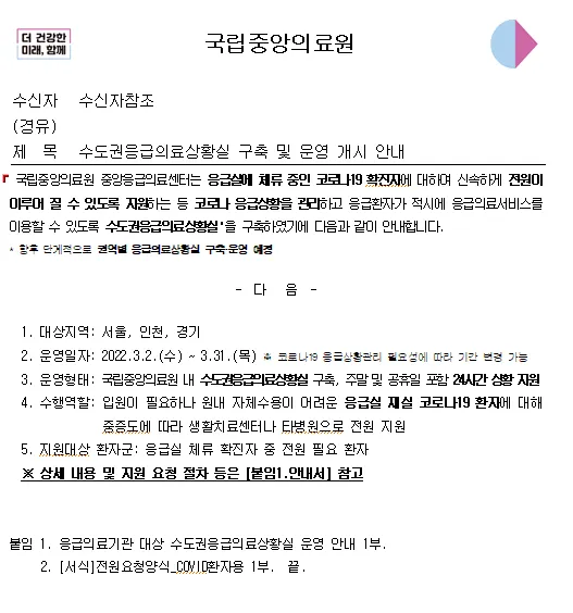 중앙센터는 응급실에 체류중인 코로나 환자 대응을 위해 수도권응급의료상황실을 개설하여