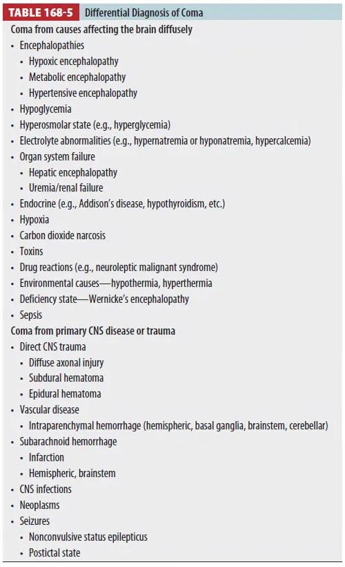 진찰, lab, neuroimaging을 통해 응급실 거의 모든 환자의 coma 원인을 찾을 수 있다