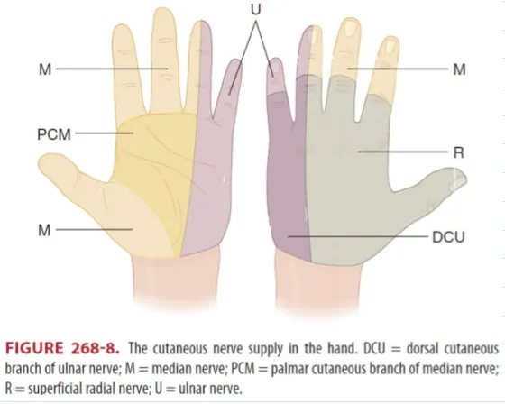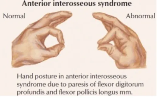 (1) Median nerve – OK sign (flex IP thumb joint & DIP index joint)
