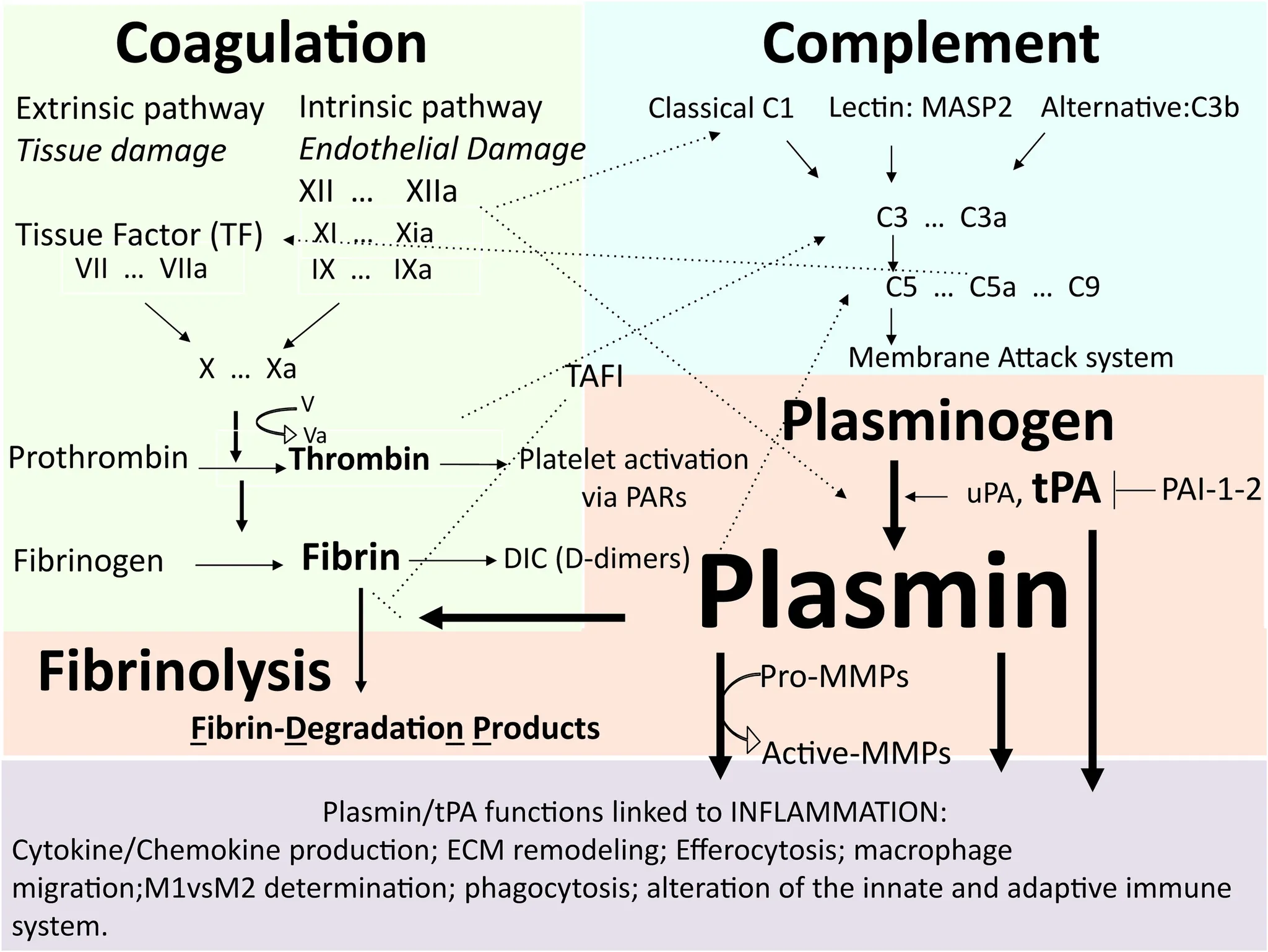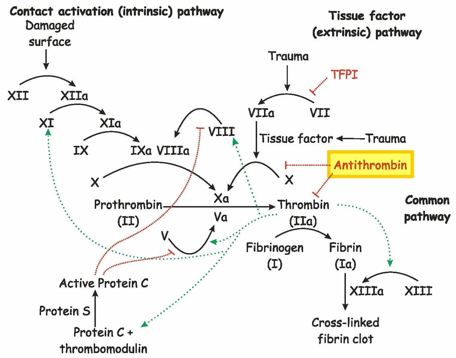Thrombin과 Plasmin의 우세 정도에 따라 임상적으로 혈전 또는 출혈상태로 나타날 수 있다.
